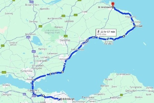The walk passes through a mix of coastal paths, countryside, and towns. The journey culminates in St Andrews, known for its medieval cathedral ruins making it a meaningful and scenic walk through Scotland's rich history.